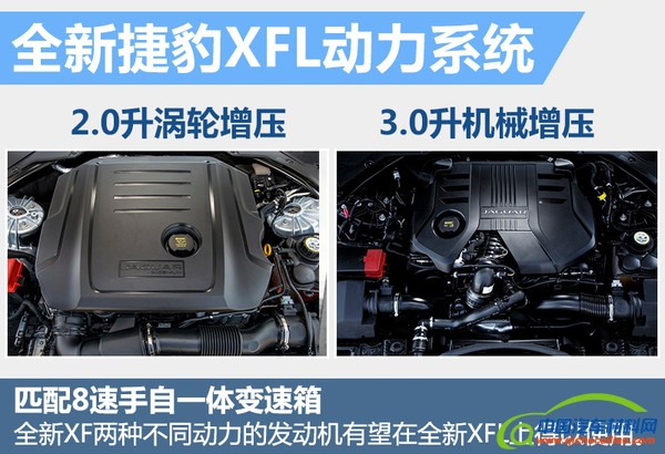 动力方面,已经投放市场的全新XF搭载的是2.0升4缸涡轮增压和3.0升V6机械增压两种不同排量的发动机。其中,2.0升涡轮增压发动机的最大功率为177千瓦,峰值扭矩达到340牛米;而3.0升机械增压发动机的最大功率为250千瓦,峰值扭矩达到450牛米。国产的XFL预计将保留这两种动力组合。另外在传动方面,与发动机匹配的将是8速手自一体变速箱。