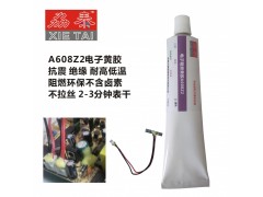 A608Z2黄胶是一种粘结力强、适用范围广、不含卤素符合最新环保要求的通用工业接着剂。它具有良好的可使用性,拉丝现象少,不松垂,可垂直面施胶。可用于各种粘接,主要用途是线路板元器件粘接固定、密封,大型电容、电阻、电感,端子线材等各种电子元器件和风扇、散热片、扬声器等机械部件的固定及粘接,以防止因震动或其他外力冲击而产生的撕裂或其他应力损伤。