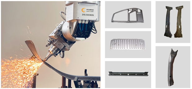 中谷联创三维五轴激光切割机主要适用于汽车制造、船舶制造、工程机械、模具、建筑、桥梁等领域的厚钣金材料的3D切割。