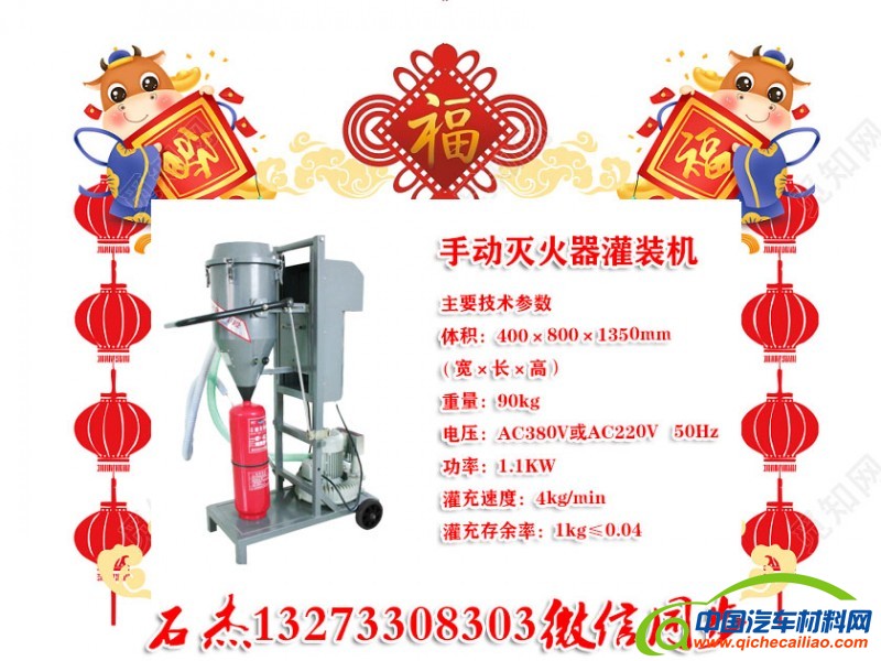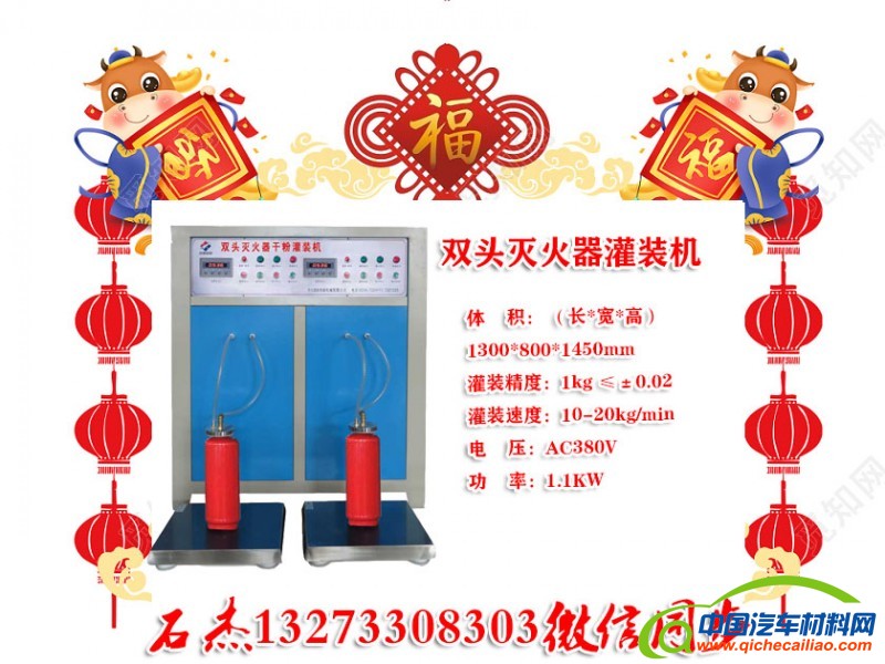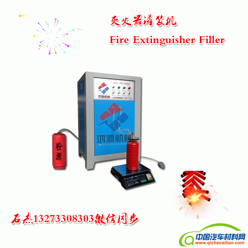 灭火器灌装机新型提供的具有确称重功能的悬吊式灭火器干粉灌装机构,采用悬臂梁式称重传感器,对传感器下方的所有部件进行整体称重,消除了因罐体在承托板上存在位置偏差所造成的称重差异,其结构简单,使用方便,降低了对推送机构的度要求,大大提高了灌装效率和灌装度。