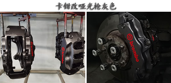 烤漆改色,烤漆改色与普通的喷漆改色不同,是在给卡钳改色后经过多种工序‘三喷三烤’如(打磨,清洗,烘干,喷底漆,烘干,喷面漆,表干,喷透明清漆等步骤)这种方法虽然价格不低,但是卡钳烤漆改色的色泽效果是非常帮的,而且卡钳烤漆改色后不仅耐高温,改后也不会出现掉漆掉色的情况。
