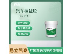 汽车内饰植绒胶Felix-410是一款用于植绒的水性聚氨酯胶粘剂,对诸如ABS、ABS/PC、表面处理的PP等基材具有优异的粘接强度,广泛应用于汽车内饰件、手套箱等表面植绒,达到美观、减震、降噪的作用。