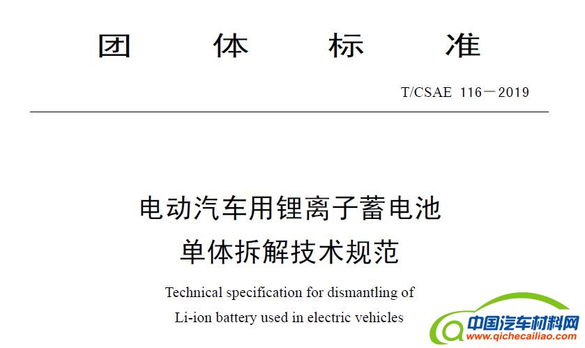 本标准规定了电动汽车用锂离子蓄电池材料回收再利用过程中单体拆解的术语和定义、要求和作业程序。 本标准适用于电动汽车用锂离子蓄电池材料回收再利用过程中单体拆解。储能用锂离子蓄电池单体的拆解工作可参考使用。
