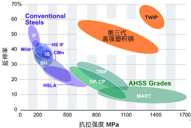 按强度级别分为:普通强度钢板、高强度钢板、超高强度钢板、特高强度钢板;