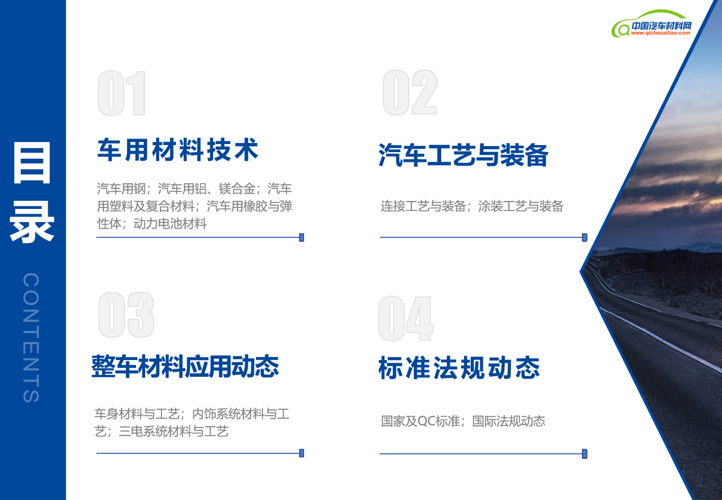 【汽车材料】汽车行业作为科技进步与产业升级的先锋,其每一步发展都牵动着全球经济的脉搏。汽车材料与制造工艺作为汽车技术创新的基石,不仅关乎车辆的性能、安全、环保,更是推动汽车产业转型升级的关键力量。为了便于广大读者查看汽车材料与制造工艺领域的新闻动态,中国汽车材料网自2024年7月起,正式推出《汽车材料新闻月报》。《月报》将精心筛选的国内外汽车行业材料技术、工艺装备、整车应用及标准法规四个方面的资讯呈现给广大读者,希望通过持续分享这些有价值的信息,能够激发行业内外的创新思维,促进技术交流与合作,共同推动汽车行业的进步和发展。