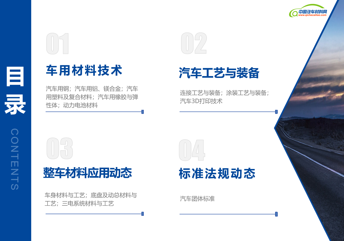 【汽车材料】汽车行业作为科技进步与产业升级的先锋,其每一步发展都牵动着全球经济的脉搏。汽车材料与制造工艺作为汽车技术创新的基石,不仅关乎车辆的性能、安全、环保,更是推动汽车产业转型升级的关键力量。为了便于广大读者查看汽车材料与制造工艺领域的新闻动态,中国汽车材料网自2024年7月起,正式推出《汽车材料新闻月报》。《月报》将精心筛选的国内外汽车行业材料技术、工艺装备、整车应用及标准法规四个方面的资讯呈现给广大读者,希望通过持续分享这些有价值的信息,能够激发行业内外的创新思维,促进技术交流与合作,共同推动汽车行业的进步和发展。
