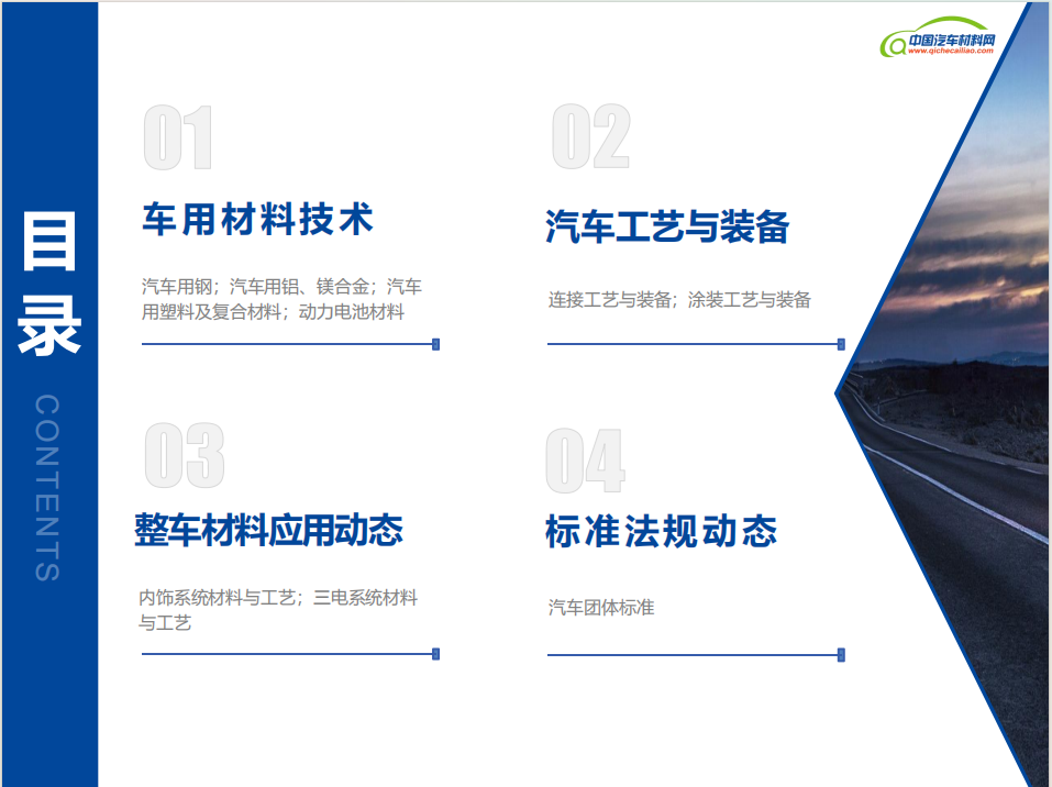 【汽车材料】汽车行业作为科技进步与产业升级的先锋,其每一步发展都牵动着全球经济的脉搏。汽车材料与制造工艺作为汽车技术创新的基石,不仅关乎车辆的性能、安全、环保,更是推动汽车产业转型升级的关键力量。为了便于广大读者查看汽车材料与制造工艺领域的新闻动态,中国汽车材料网自2024年7月起,正式推出《汽车材料新闻月报》。《月报》将精心筛选的国内外汽车行业材料技术、工艺装备、整车应用及标准法规四个方面的资讯呈现给广大读者,希望通过持续分享这些有价值的信息,能够激发行业内外的创新思维,促进技术交流与合作,共同推动汽车行业的进步和发展。