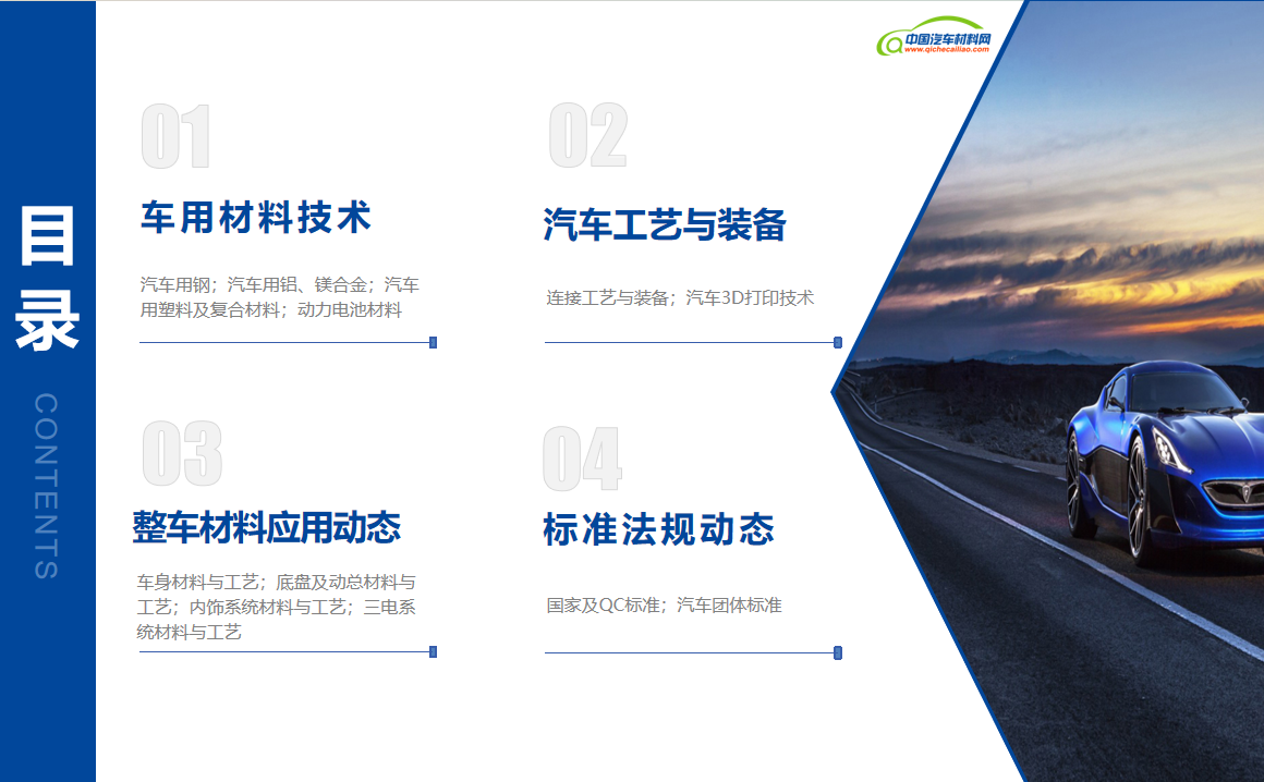 【汽车材料】汽车行业作为科技进步与产业升级的先锋,其每一步发展都牵动着全球经济的脉搏。汽车材料与制造工艺作为汽车技术创新的基石,不仅关乎车辆的性能、安全、环保,更是推动汽车产业转型升级的关键力量。为了便于广大读者查看汽车材料与制造工艺领域的新闻动态,中国汽车材料网自2024年7月起,正式推出《汽车材料新闻月报》。《月报》将精心筛选的国内外汽车行业材料技术、工艺装备、整车应用及标准法规四个方面的资讯呈现给广大读者,希望通过持续分享这些有价值的信息,能够激发行业内外的创新思维,促进技术交流与合作,共同推动汽车行业的进步和发展。