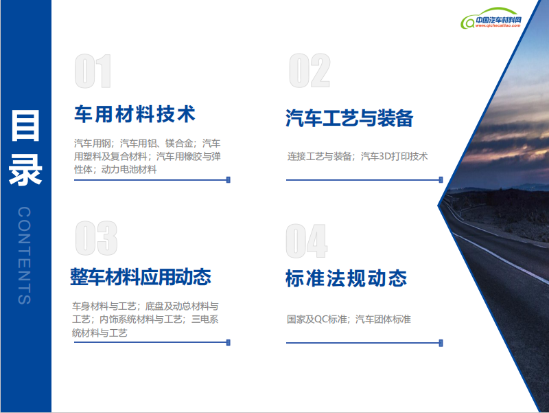 【汽车材料】汽车行业作为科技进步与产业升级的先锋,其每一步发展都牵动着全球经济的脉搏。汽车材料与制造工艺作为汽车技术创新的基石,不仅关乎车辆的性能、安全、环保,更是推动汽车产业转型升级的关键力量。为了便于广大读者查看汽车材料与制造工艺领域的新闻动态,中国汽车材料网自2024年7月起,正式推出《汽车材料新闻月报》。《月报》将精心筛选的国内外汽车行业材料技术、工艺装备、整车应用及标准法规四个方面的资讯呈现给广大读者,希望通过持续分享这些有价值的信息,能够激发行业内外的创新思维,促进技术交流与合作,共同推动汽车行业的进步和发展。